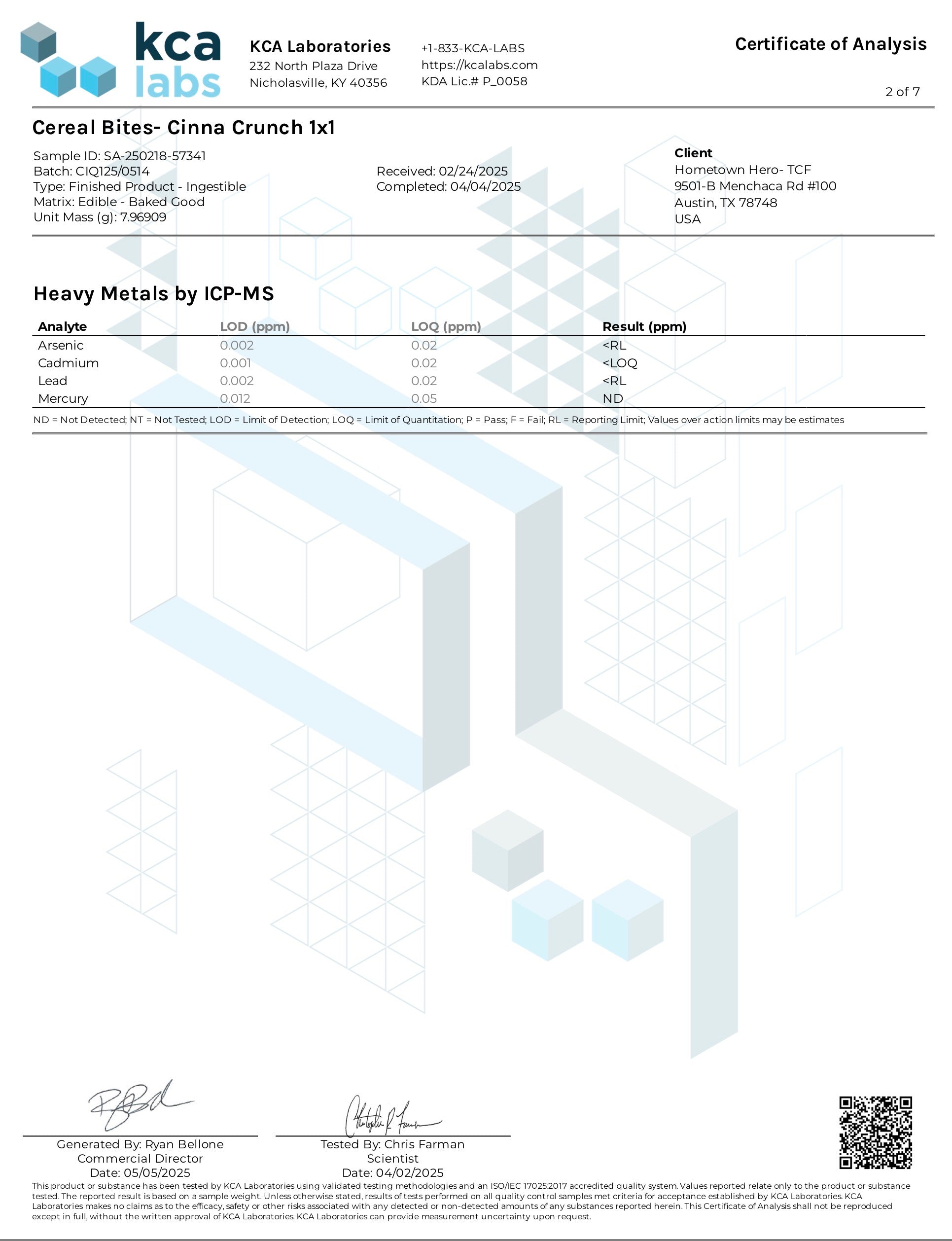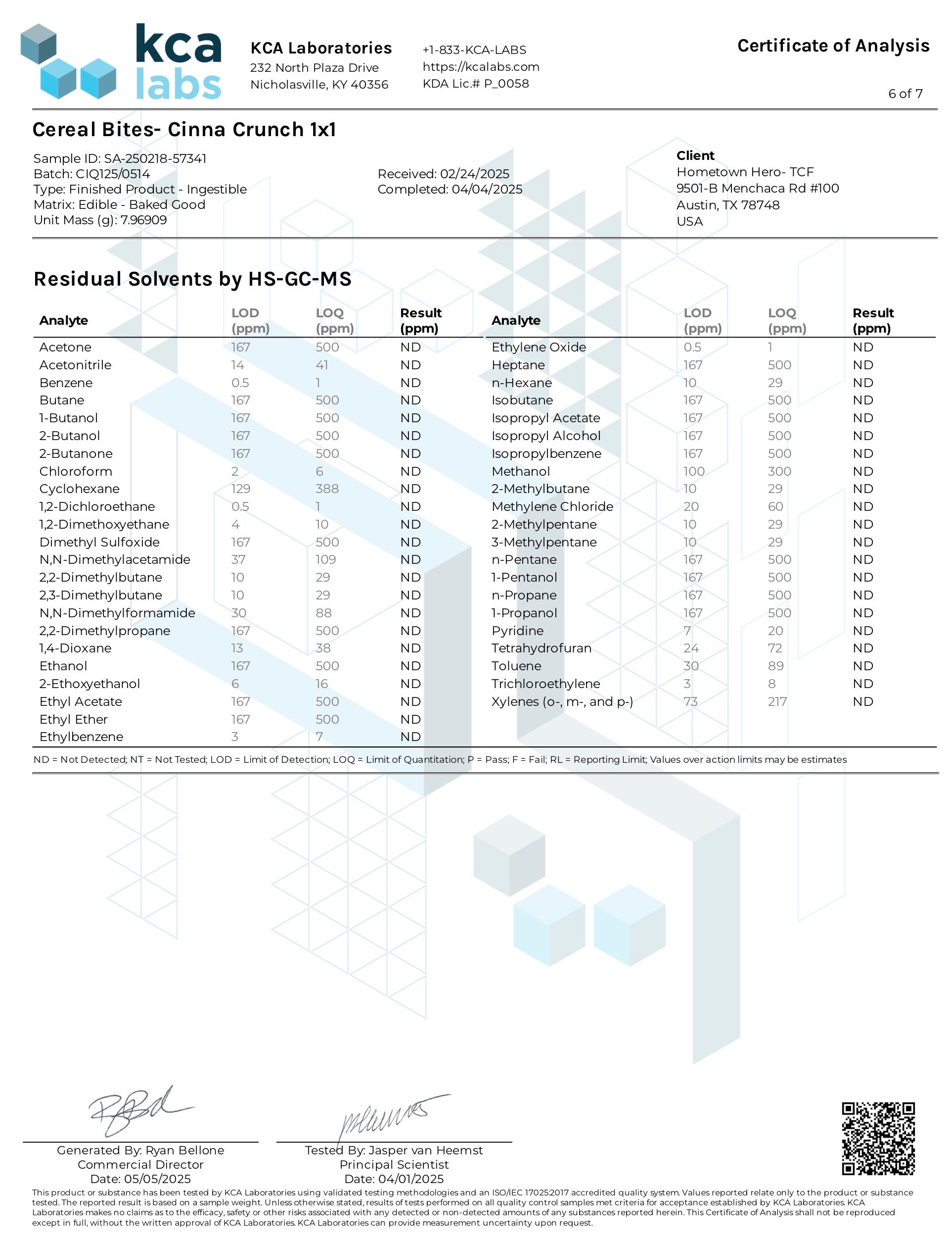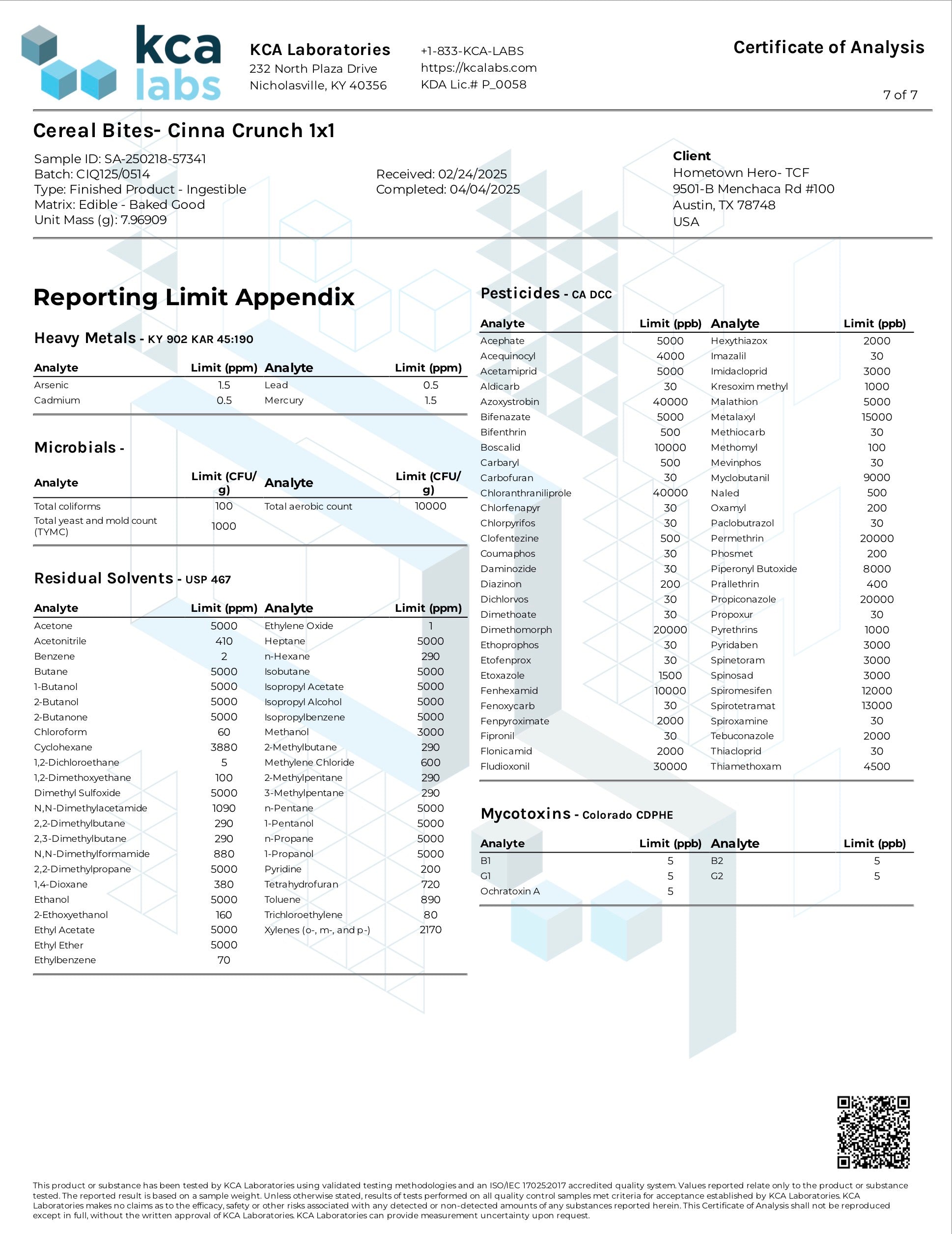 Total Fat: 1g, Cholesterol 0, Sodium 25mg, Total Carbs 8g, Protein 0g, Hemp Derived Delta 9, THC, Hemp Derived extract 20 mg.