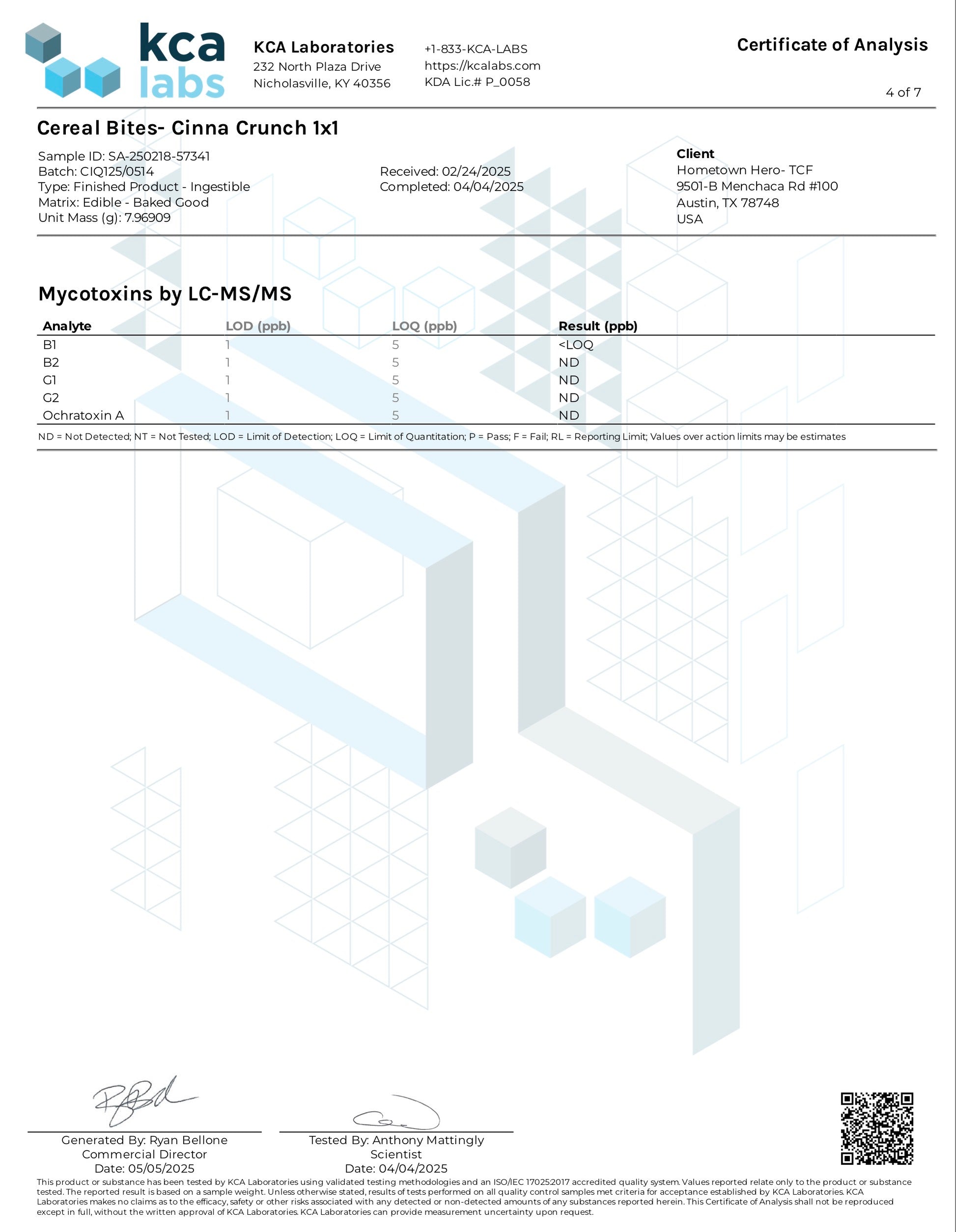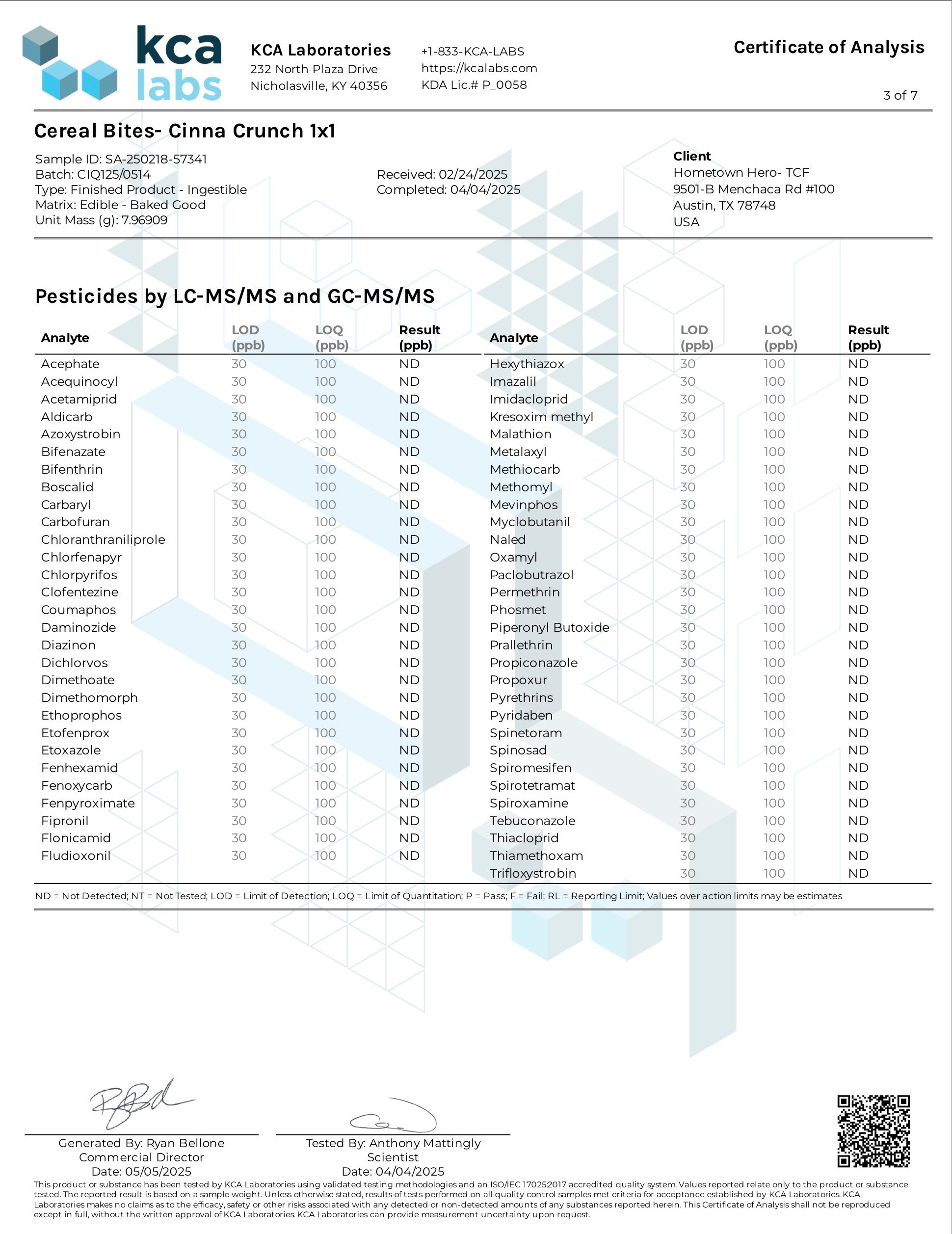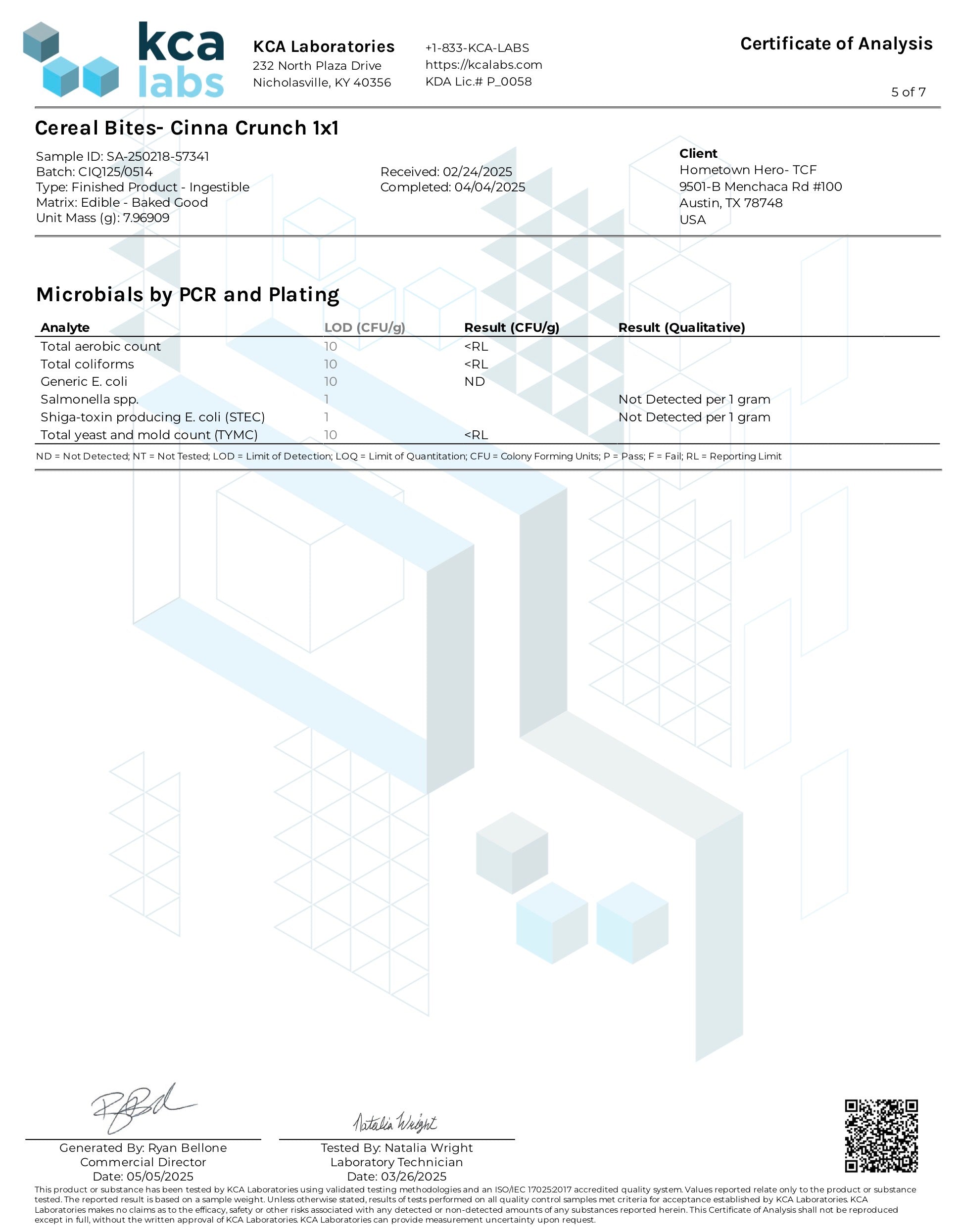 Total Fat: 1g, Cholesterol 0, Sodium 25mg, Total Carbs 8g, Protein 0g, Hemp Derived Delta 9, THC, Hemp Derived extract 20 mg.
